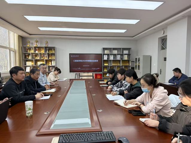 为全面加强寒假期间校园安全管理,切实增强留校学生的安全防范意识,2026年1月23日下午,口腔医学院在科技楼A249会议室开展了以“筑牢安全防线,共度平安寒假”为主题的2026年寒假安全教育会议。学院党政领导班子成员、研究生导师、专业课教师、辅导员及全体寒假留校本科生、研究生参加了会议。